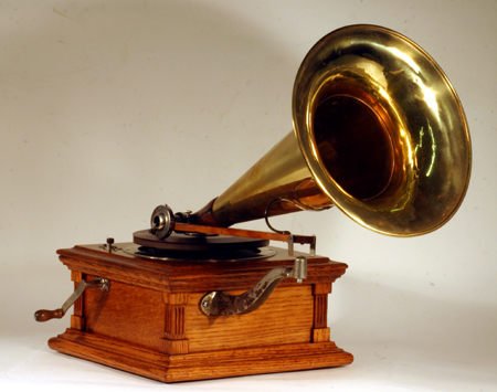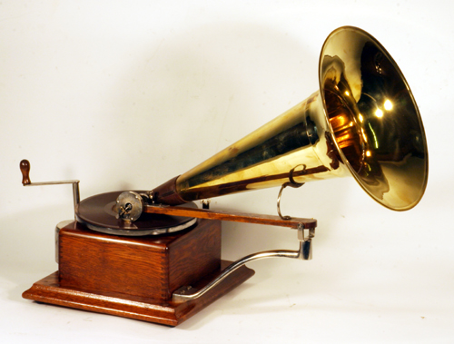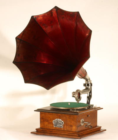 The below pictures (unless otherwise stated) and information are courtesy of The Berliner Gramophone: an Illustrated History with permission of the author, Mark Caruana, and publisher, Domenic DiBernardo. The following pictures are from the Domenic DiBernardo Collection and are all copyright. He has a website at http://mrgramophone.com/ Model 'A' -introduced in 1900 at a price of $15 -early versions--serial numbers up to the low 2600s--have a coloured decal with serial number stamped below -later versions have the emblematic stamped aluminum plate