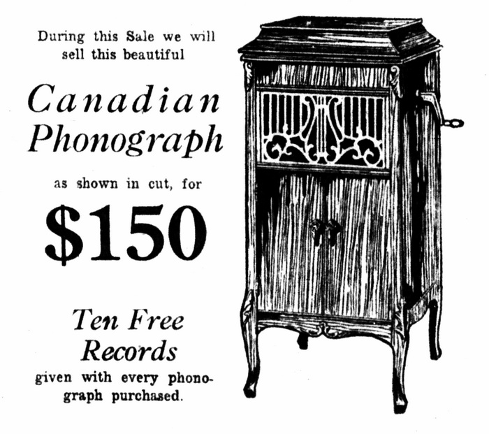 Canadian Music Trades Journal, December, 1917, p. 80-81. Announcement of the Canadian Phonograph by Canadian Phonograph Sales Co., Toronto.
