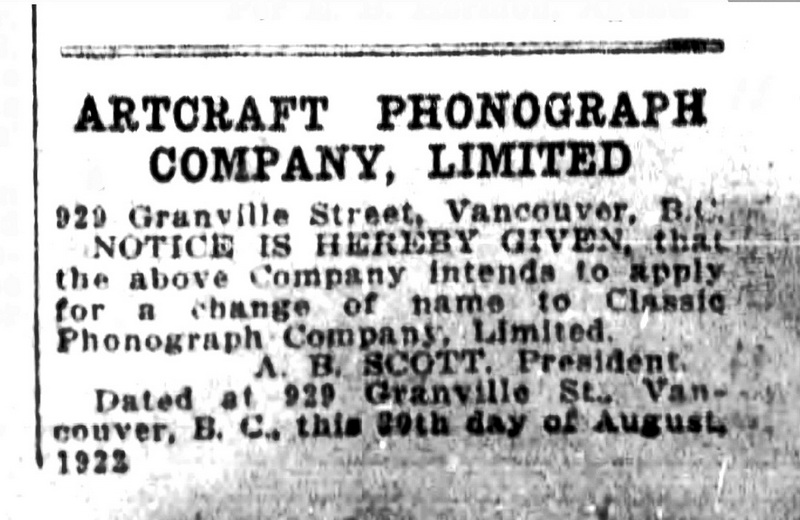 The Province (Vancouver), September 22, 1922, p. 26.