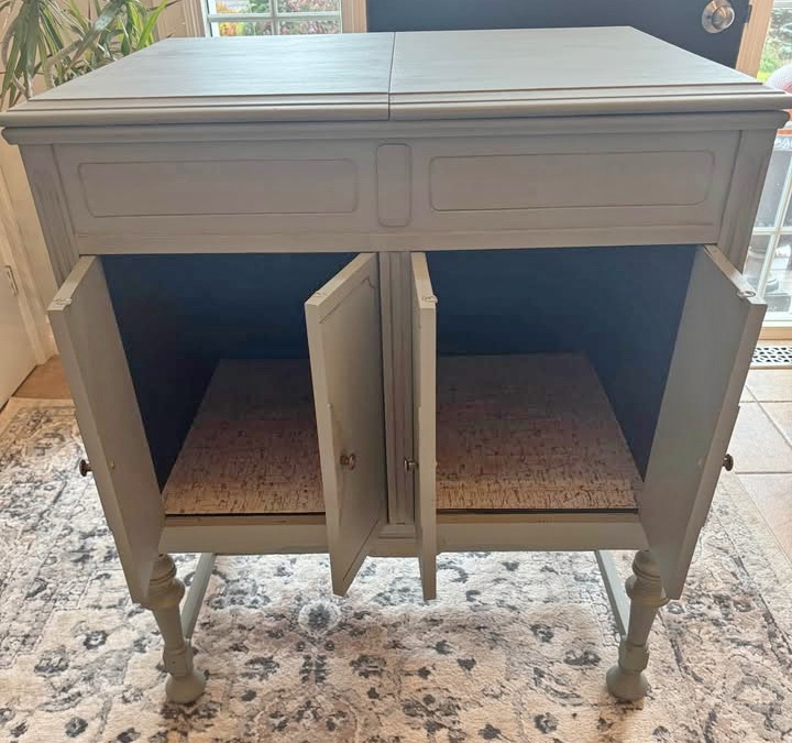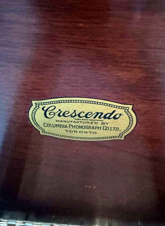 A Crescendo phonograph, cabinet only, listed for sale in Salisbury, New Brunswick in 2025.