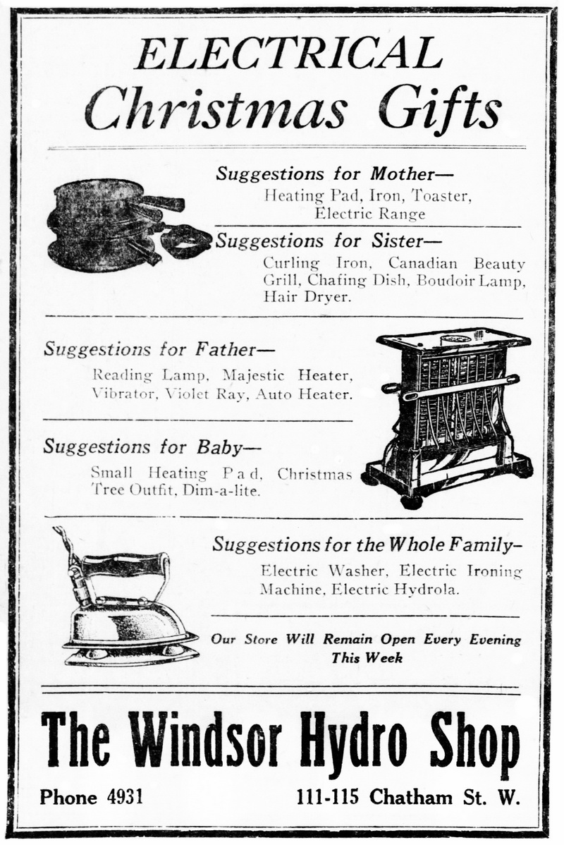 Windsor Star, June 21, 1921, p. 2. Sale of electric items in the Windsor Hydro Shop.
