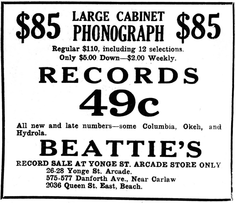 Toronto Star, January 27, 1922, p. 10. Ad which mentions Hydrola-labelled records.