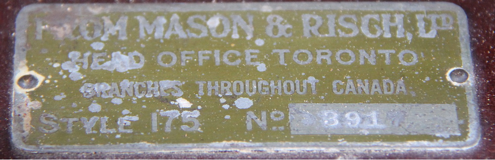 Toronto World, Oct. 19, 1919, p. 13. This is an early advertisement for Mason & Risch phonographs manufactured in their factory. The ad shows styles 124,