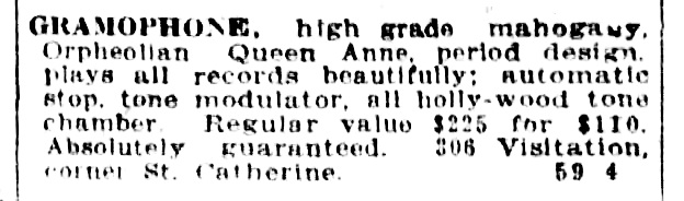For sale in Salaberry-de-Valleyfield, Quebec through Facebook Marketplace in 2024. Sold by gramophone dealer Alcide Poisson, Montreal.