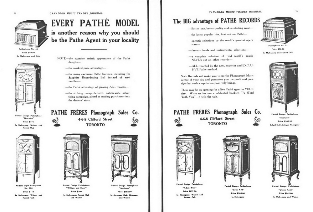 Talking Machine World, September 15, 1916, p. 22: "The recently formed Pathé Frères Phonograph Co. of Canada, Ltd., is making rapid headway in an energetic campaign to make "The