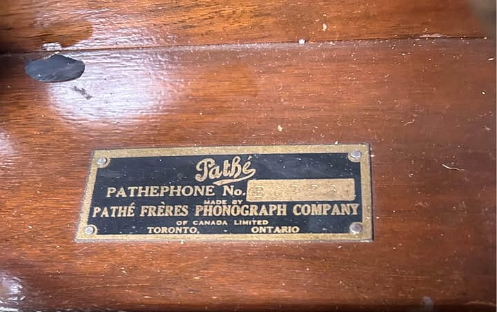 A Pathé upright phonograph for sale in Quinte West, Ontario in 2025.
