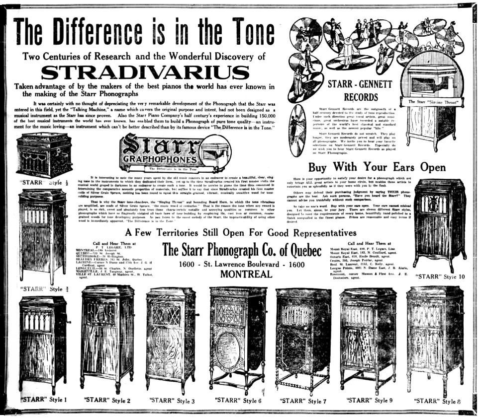 Canadian Woodworker and Furniture Manufacturer, February 1922, p. 168: "The Starr Company of Canada, Limited, London, Ont., are at present manufacturing and finishing their phonograph cabinets in Canada. Formerly the cabinets were imported from the parent organization in the United States."