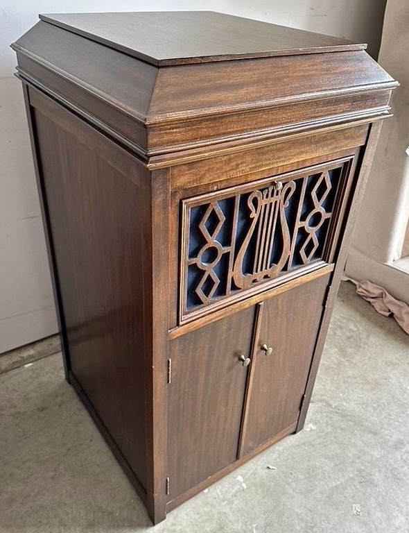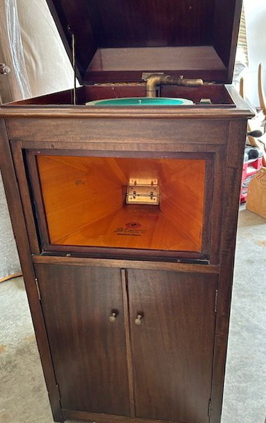 Starr "Style 2" phonograph, unfortunately missing its legs, for sale in Nanaimo, B.C. in 2024. Labelled "Canadian Phonograph Supply Company, Exclusive Canadian Distributors, London, Canada". Photographs submitted by Lance Husoy.