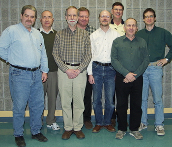 Seated: Steven Barr, John Steffen, Earl Mathewson, John Rutherford, Bernie Power, Don Woodrow